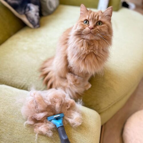 抜け毛のかたまり、ワンちゃん、ファーミネーター の3ショット。