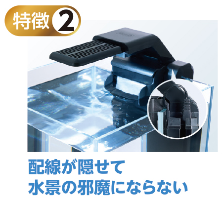 ●1本のケーブルでフィルター、LEDライトを作動させます。