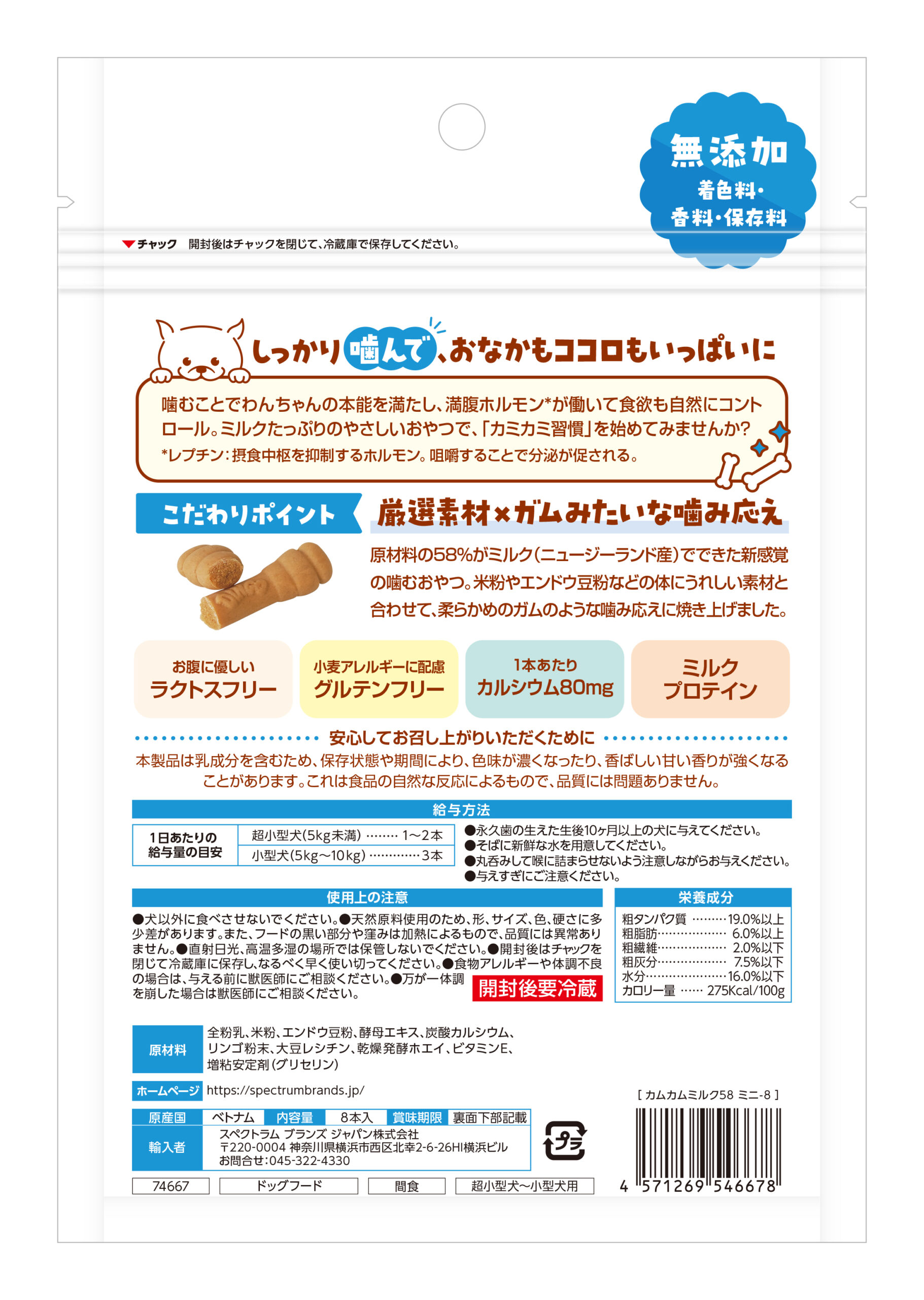 ●原材料の58%がミルク(ニュージーランド産)でできた新感覚の噛むおやつ。