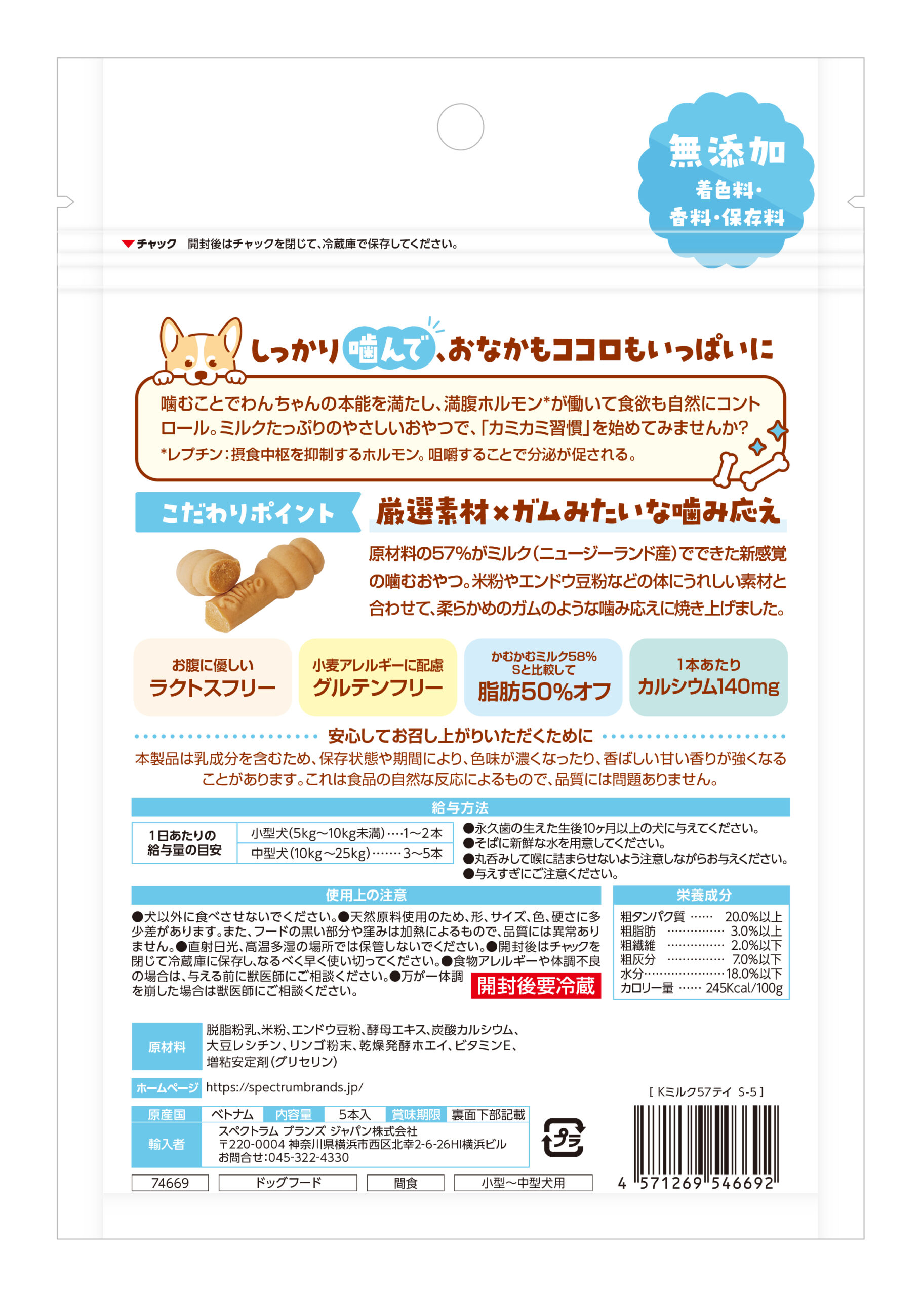 ディンゴ かむかむミルク57% 低脂肪 S 5本